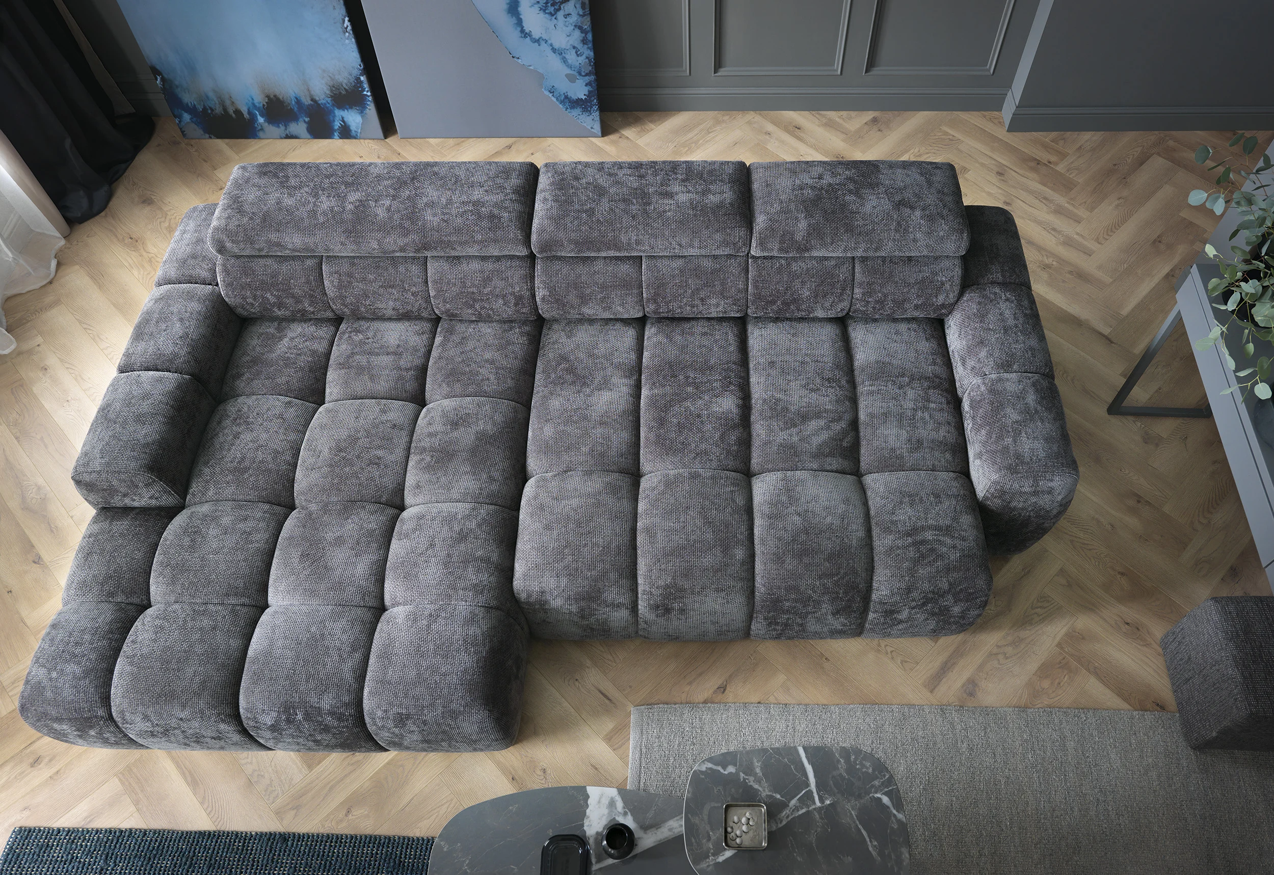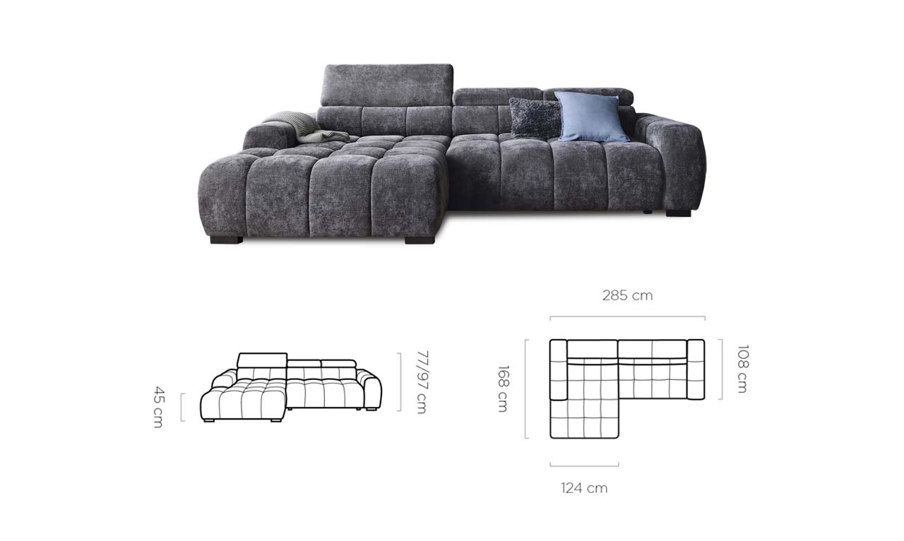BULL S — это предложение для тех, кто предпочитает современный дизайн и ожидает высокого комфорта. Выдвижное сиденье с электроприводом и подвижные подголовники позволяют принять удобное положение во время отдыха. Выразительная строчка добавляет разнообразия и придает уголку неповторимый характер.