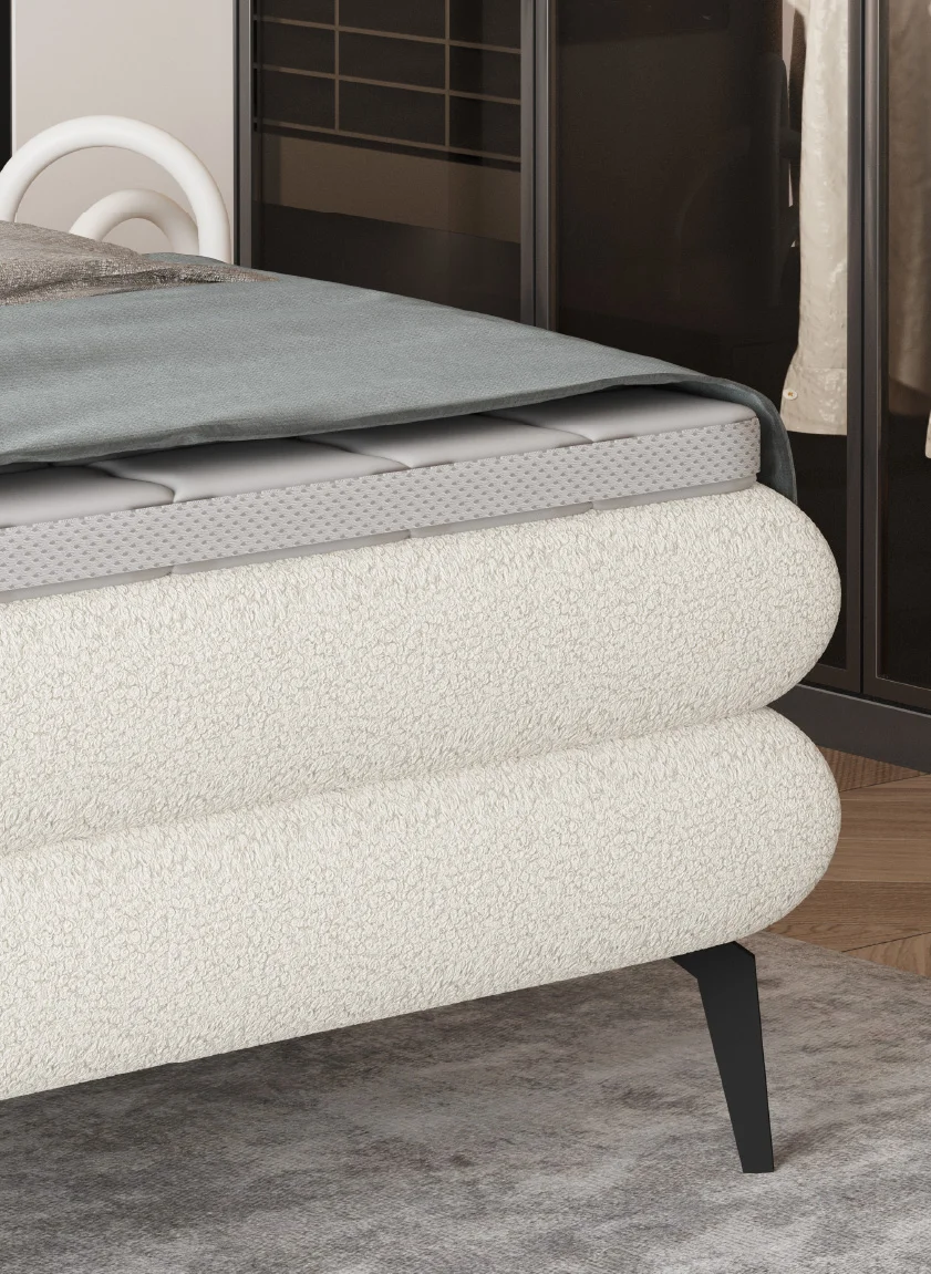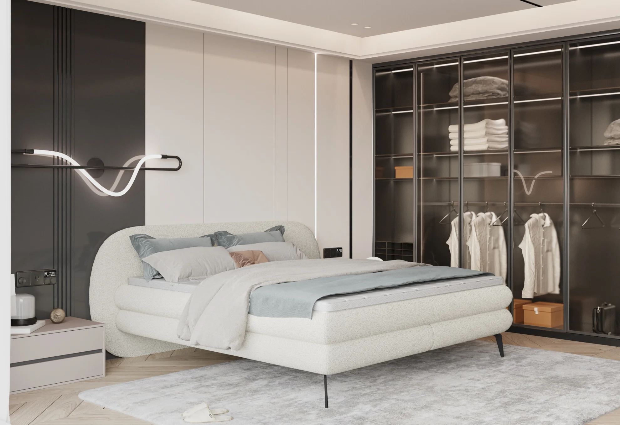 Кровать OVO — сочетание современного дизайна и безупречного комфорта. Мягкое изголовье округлой формы и утонченное основание, обитое приятной на ощупь фактурной тканью, создают атмосферу уюта и отдыха.