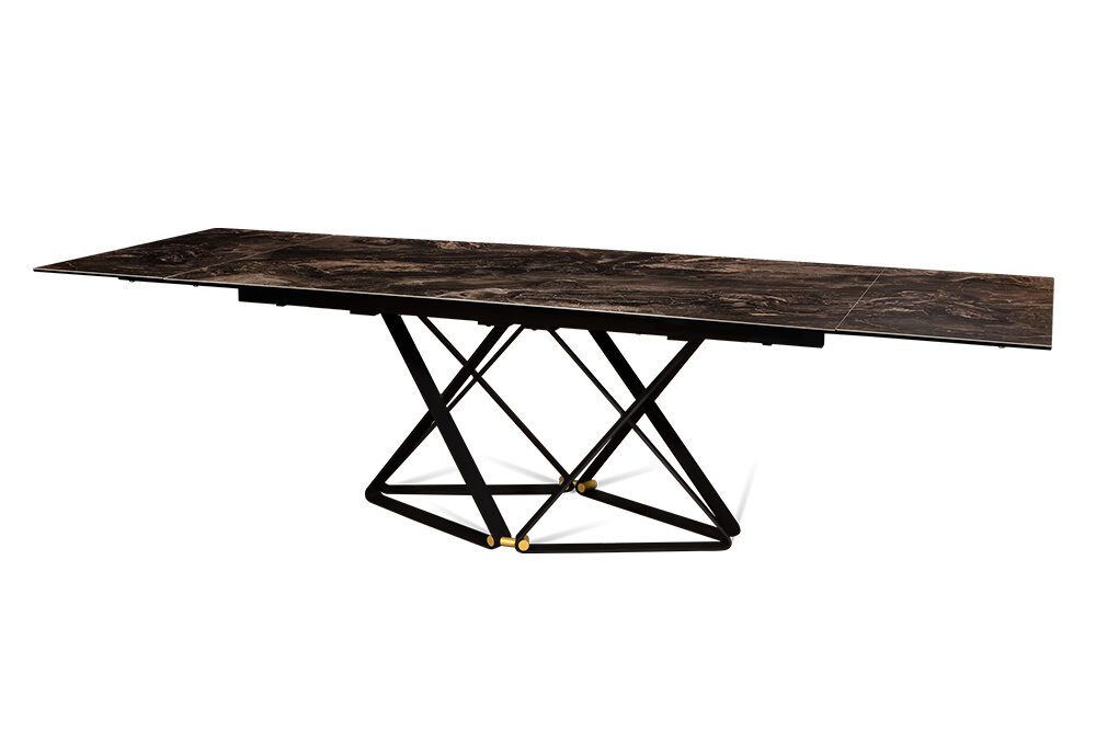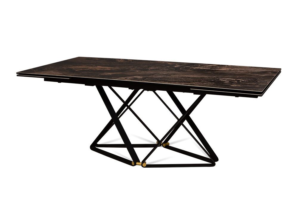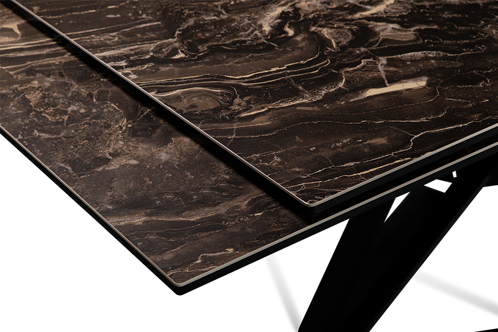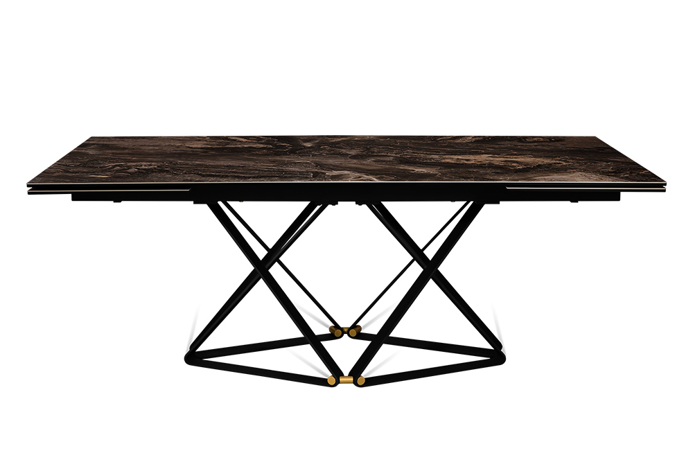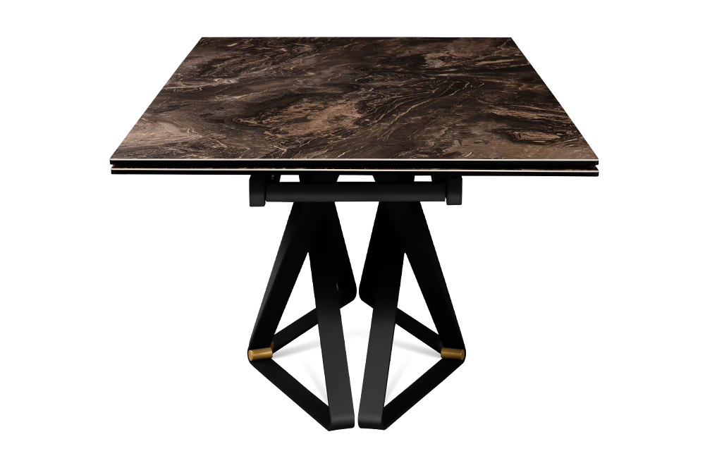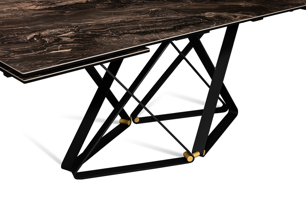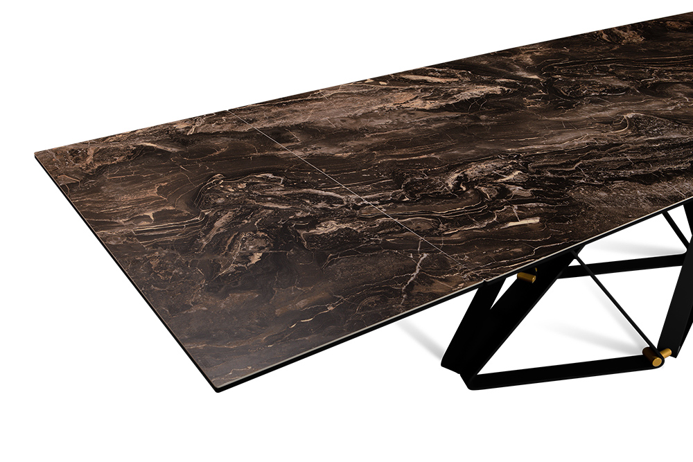 Откройте дверь в мир элегантности с нашим дизайнерским столом CANADA 200 DOLOMITE. Керамическая столешница, имитирующая темно-коричневый доломит, придает столу изысканный вид. Дизайнерские ножки, выполненные в виде эффектных сплетений треугольников, добавляют столу легкости и оригинальности, а бронзовые компаньоны становятся изысканным акцентом, придающим столу своеобразный стиль.