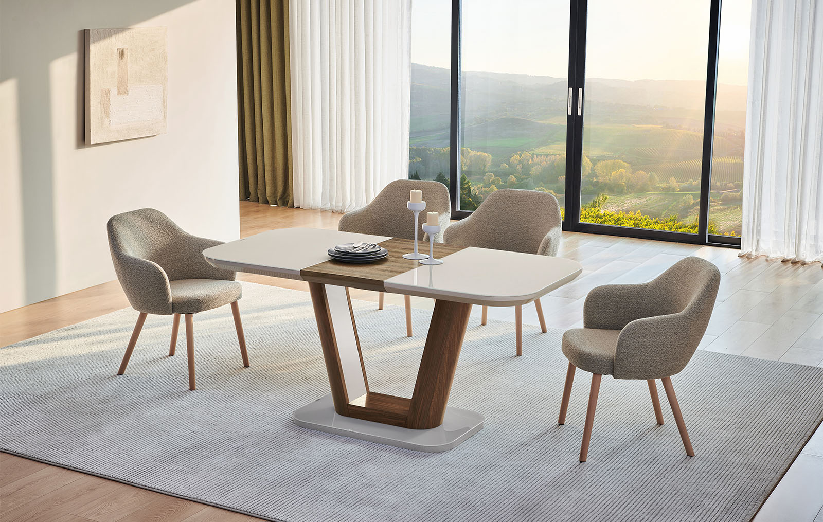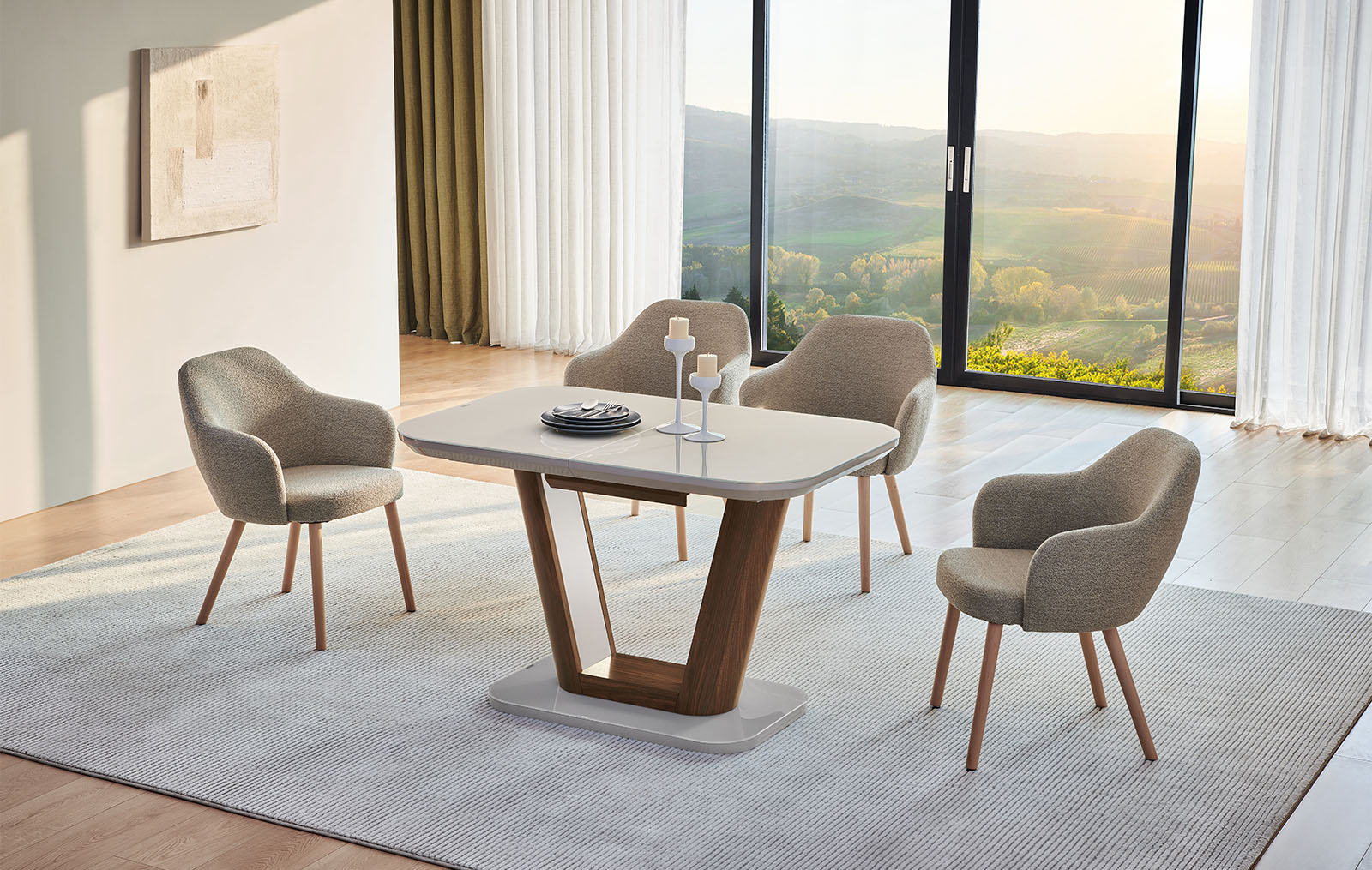 Модель можно комбинировать практически с любыми стульями и другой мебелью.