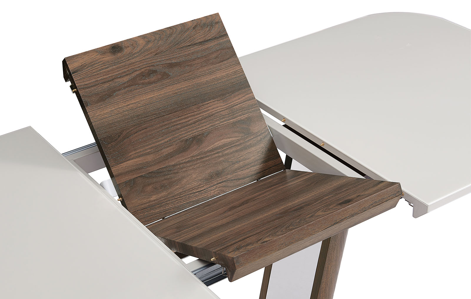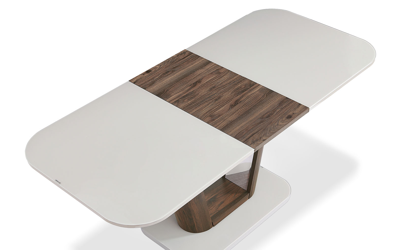 Стильный раздвижной стол Ester оценят любители изысканных и не совсем традиционных решений. Прямоугольная столешница выполнена из бежевого стекла с меламином и вставкой из MDF в оттенке дерева (этого же цвета и ножка).