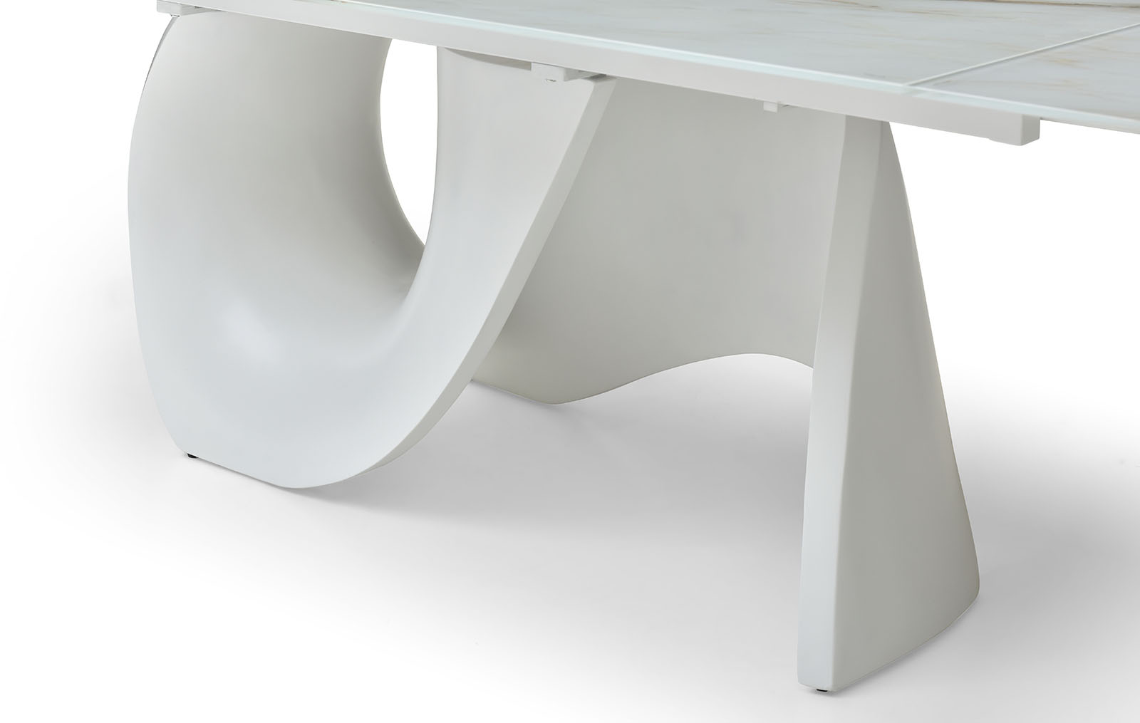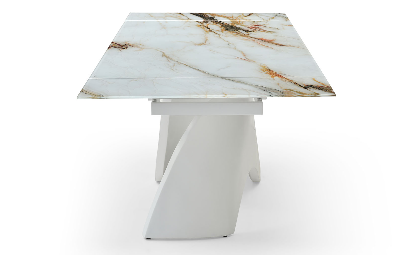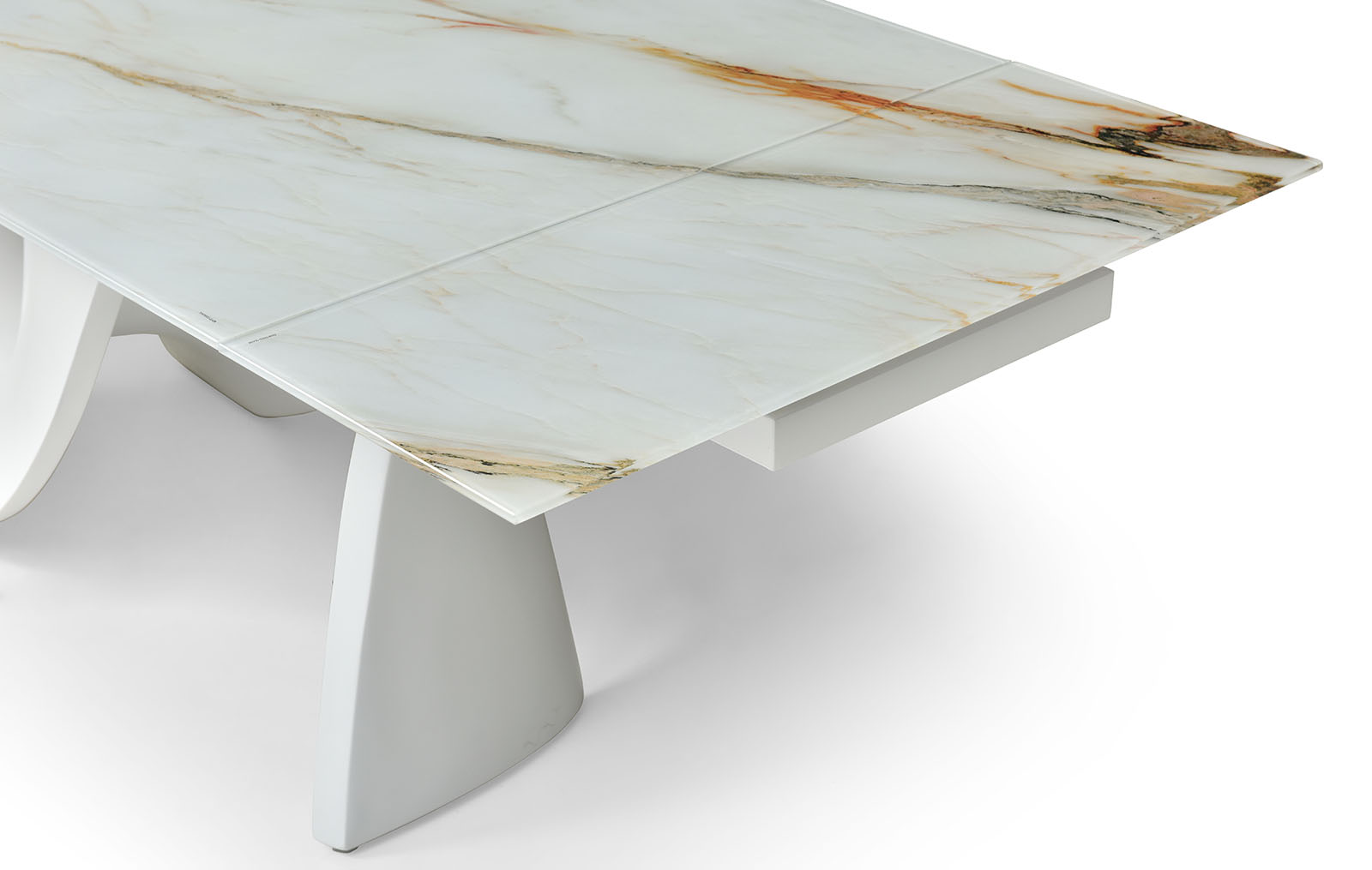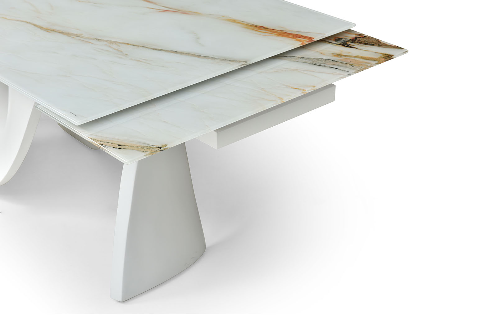 Раскладной обеденный стол Julia со столешницей из стекла на оригинальном подстолье из стекловолокна.