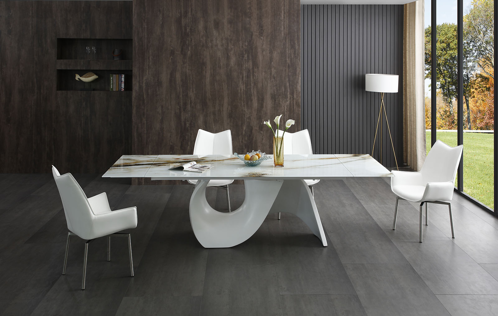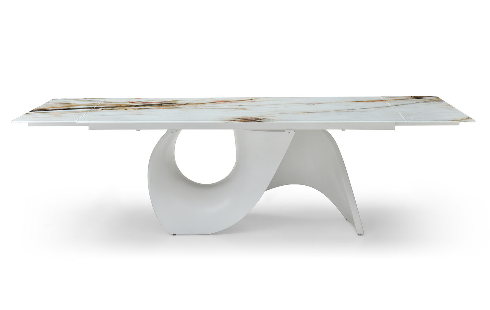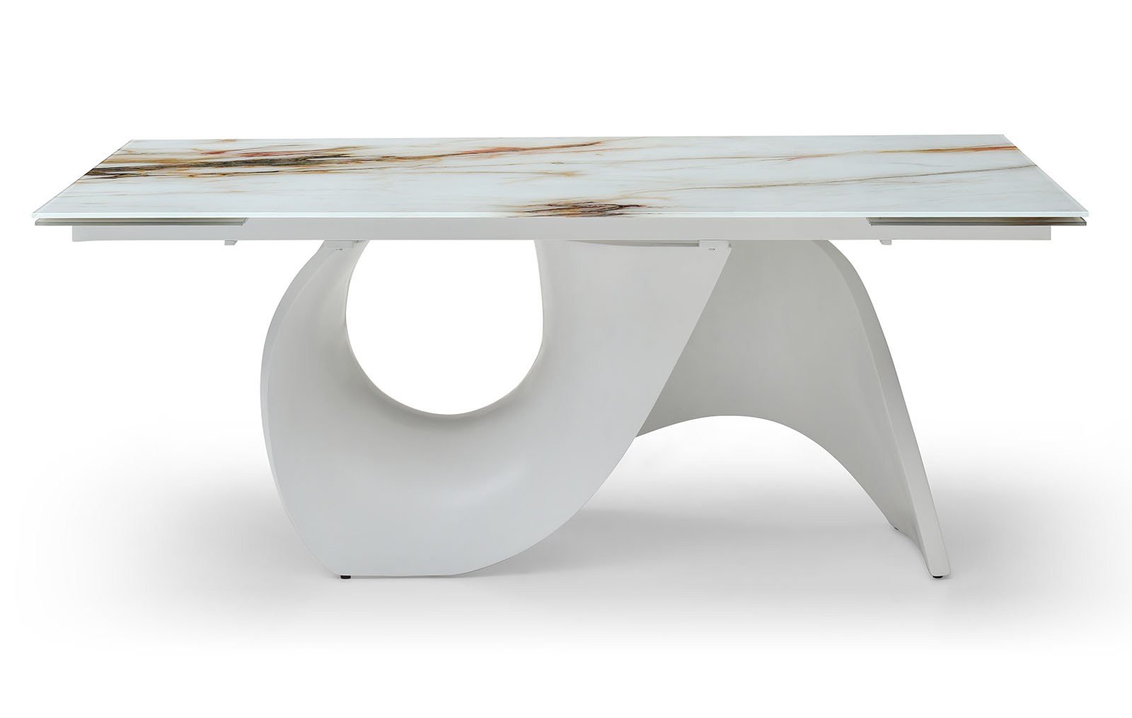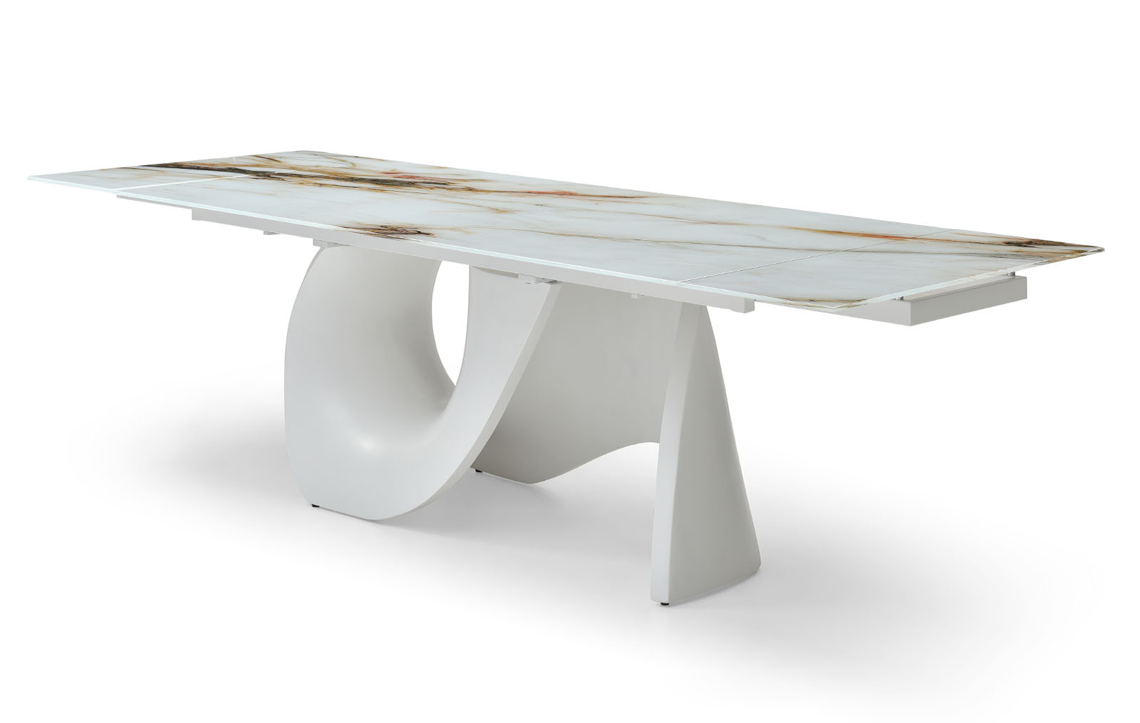 Раскладной обеденный стол Julia со столешницей из стекла на оригинальном подстолье из стекловолокна.