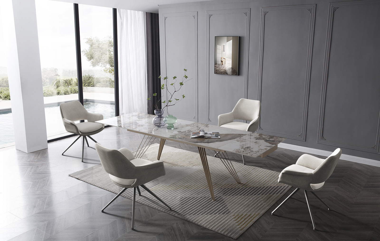 Основное преимущество такого стола – практичная керамическая столешница, отличающаяся износостойкостью, долговечностью, устойчивостью к внешним воздействиям, гигиеничностью, простотой в уходе. Такая столешница не впитывает влагу и легко очищается от загрязнений.