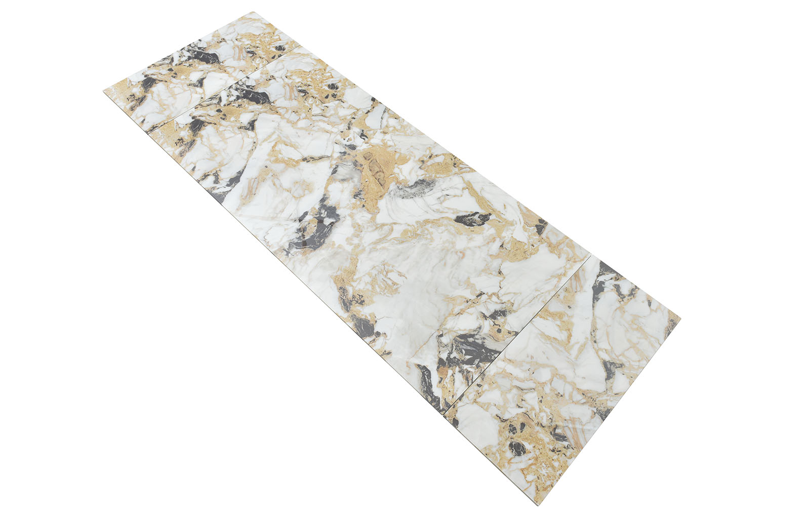 Столешница прямоугольной формы сделана из керамики толщиной 12 мм на металлическом каркасе.