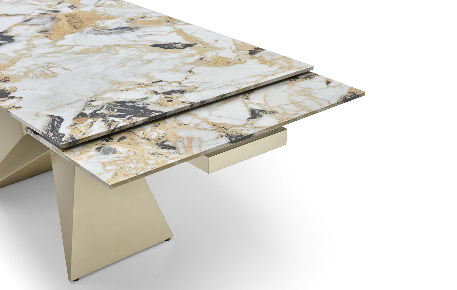 Раскладной стол Portofino Champagne с керамической столешницей – отличный выбор для тех, кто предпочитает эстетически привлекательные, но в тоже время многофункциональные предметы в интерьере.