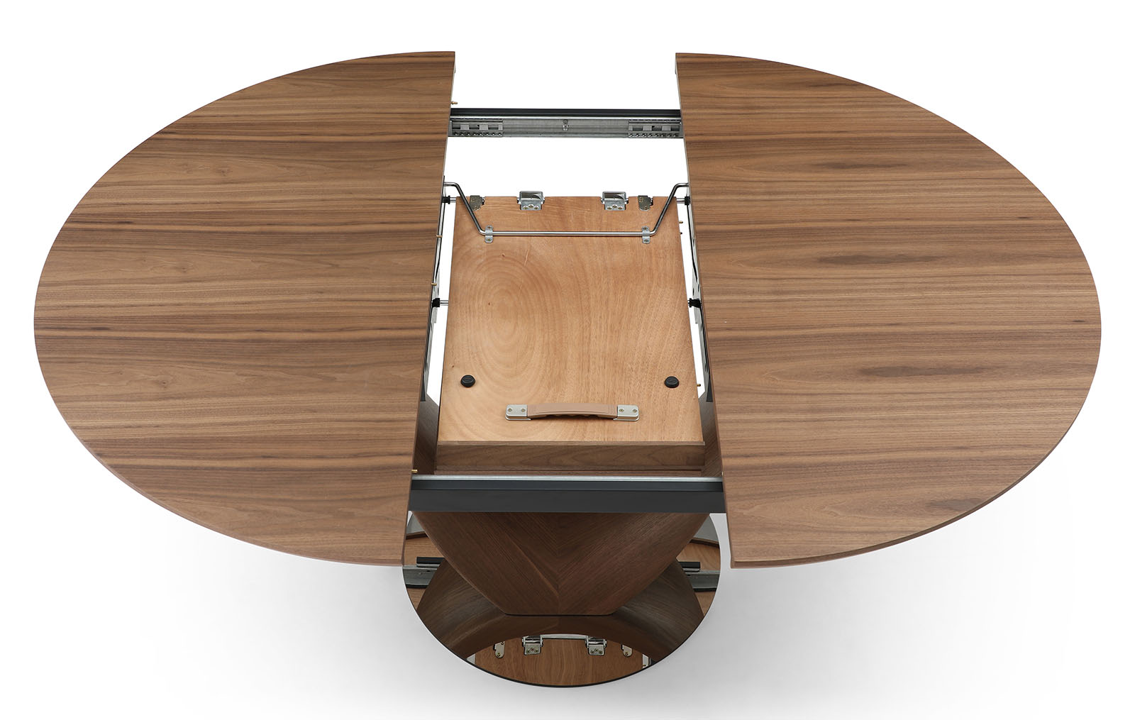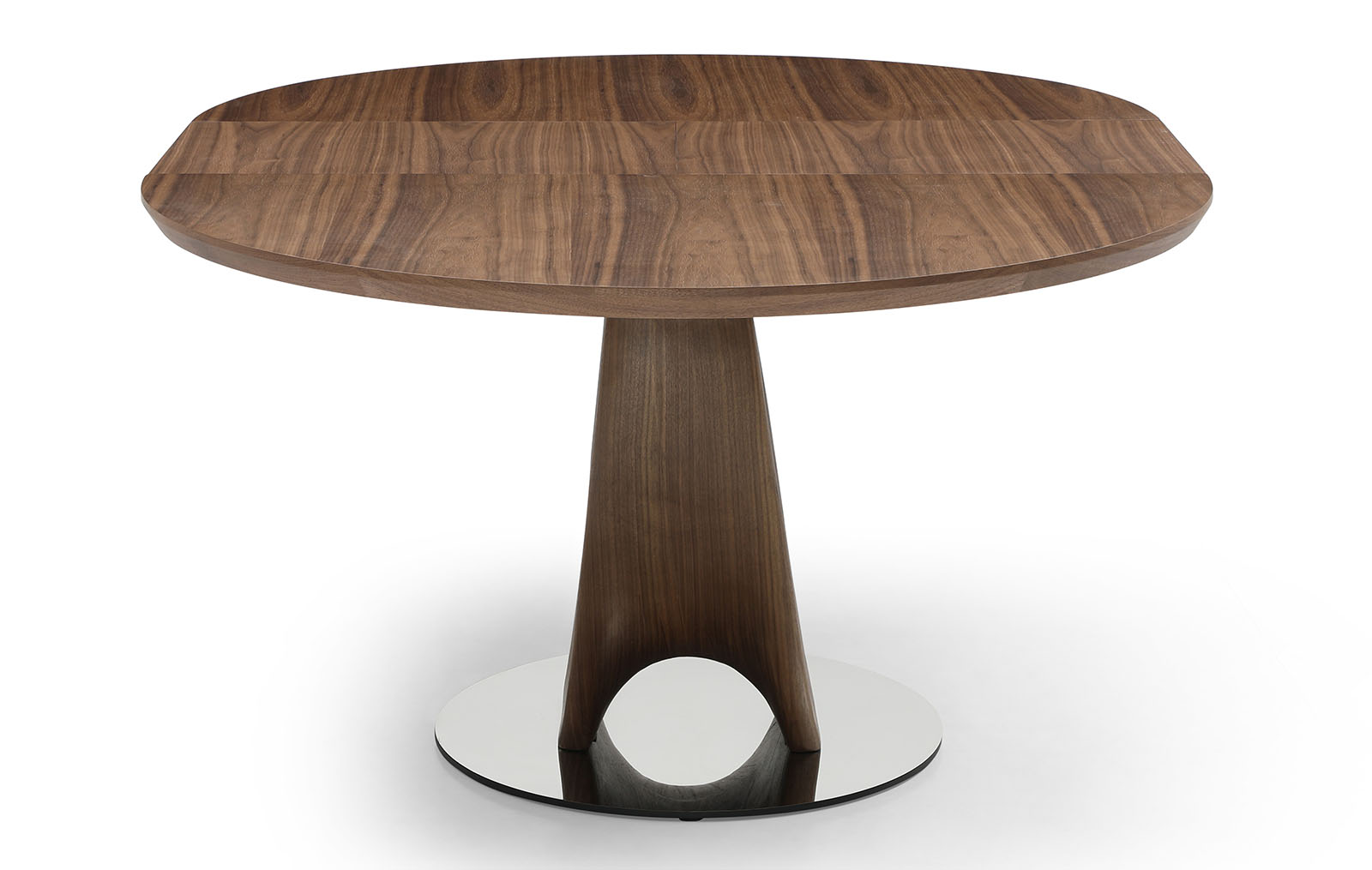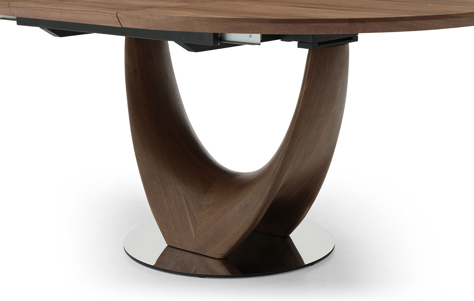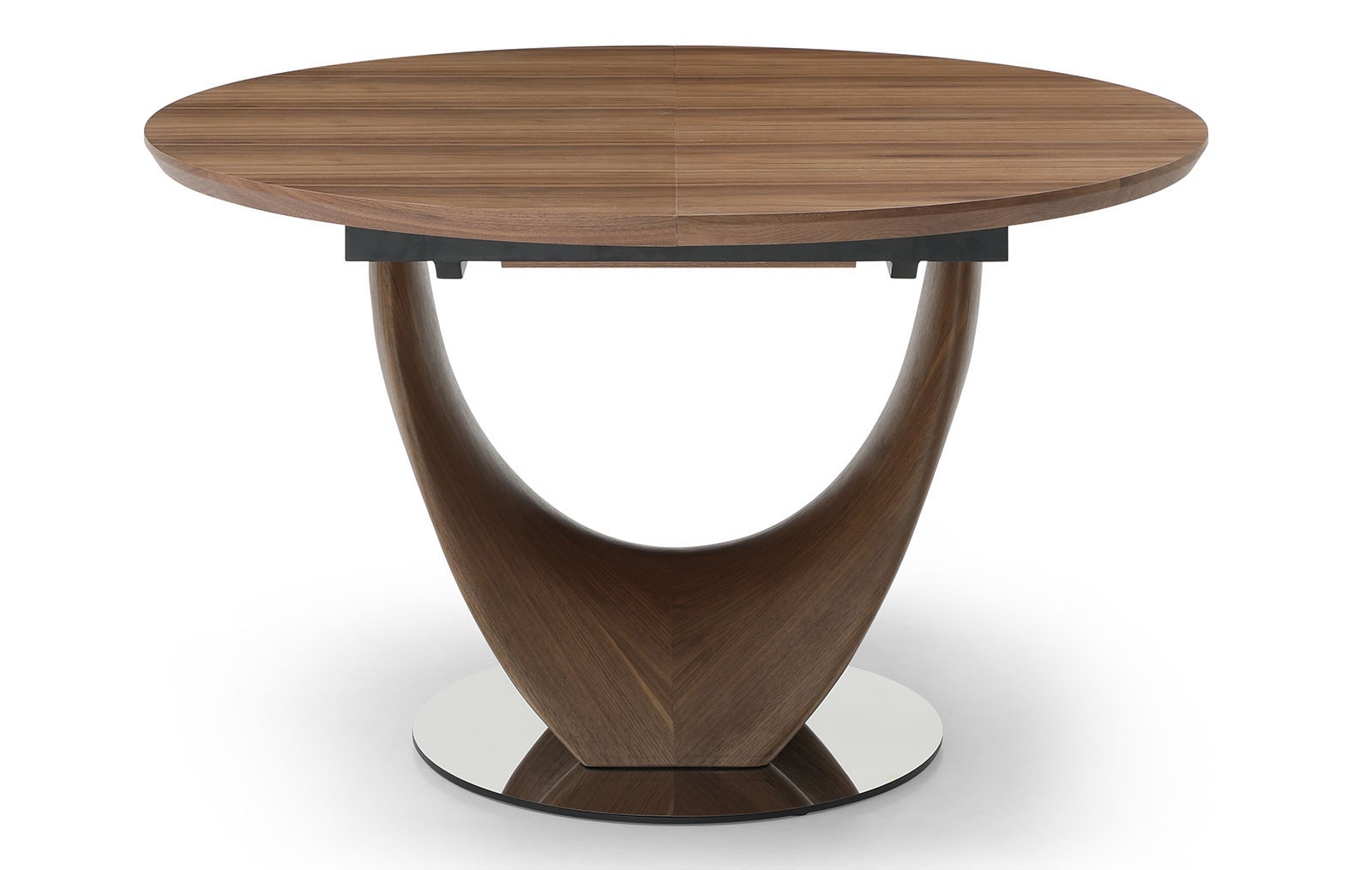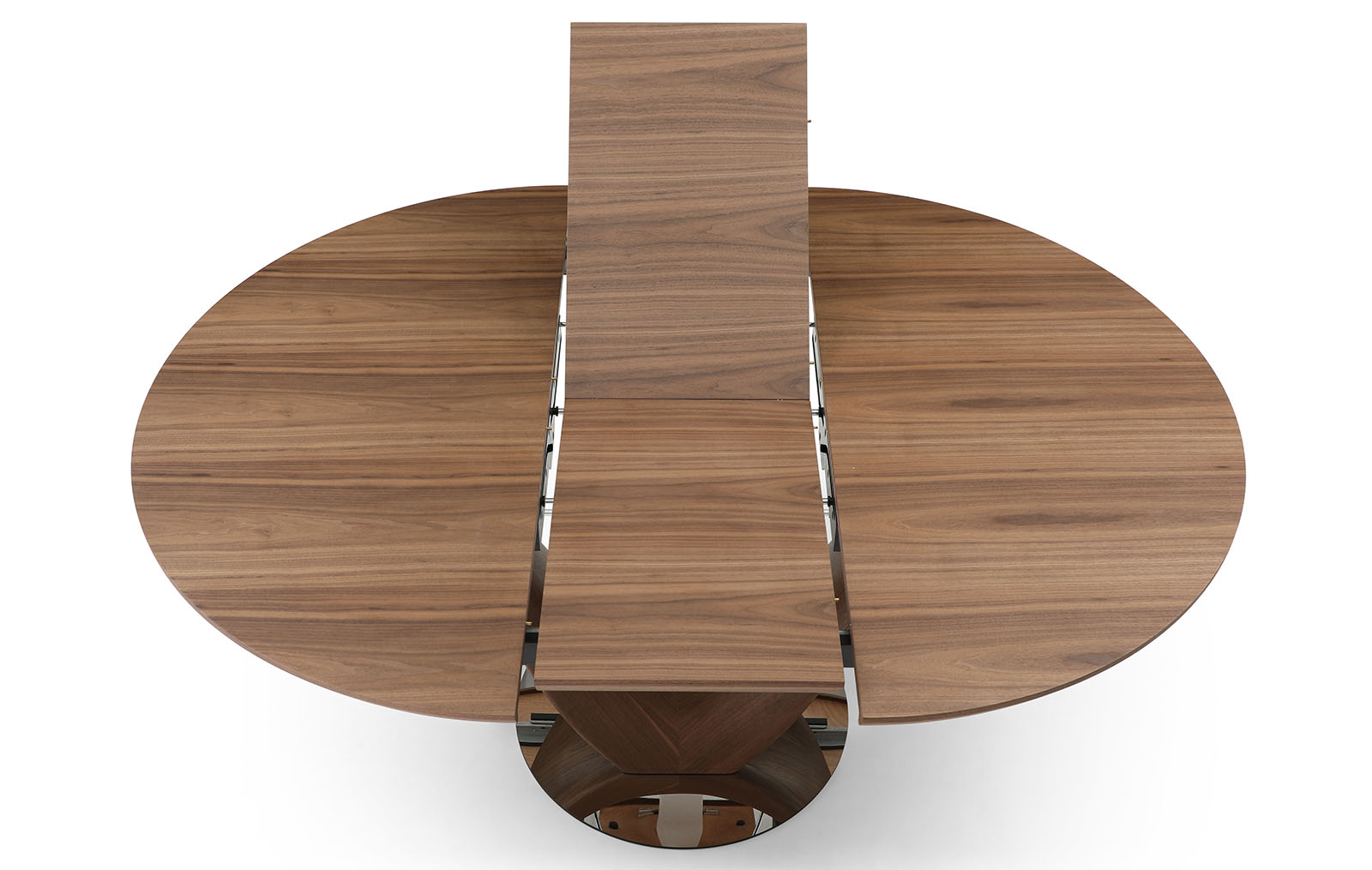 Круглый стол Ramona с оригинальным подстольем легко раскладывается в овальный при необходимости увеличить длину стола.