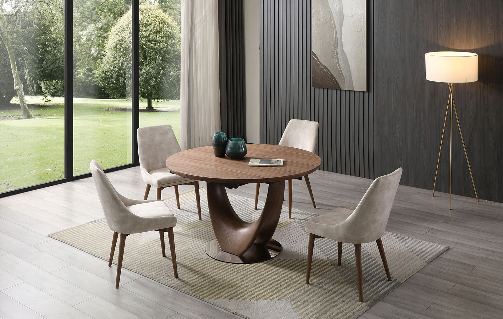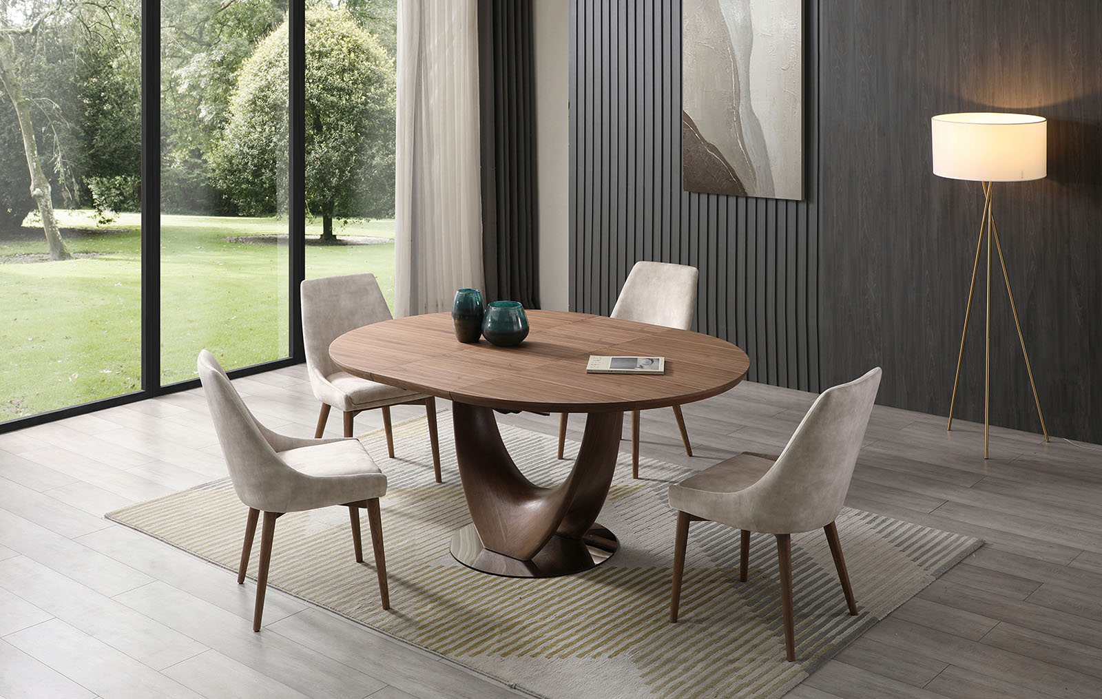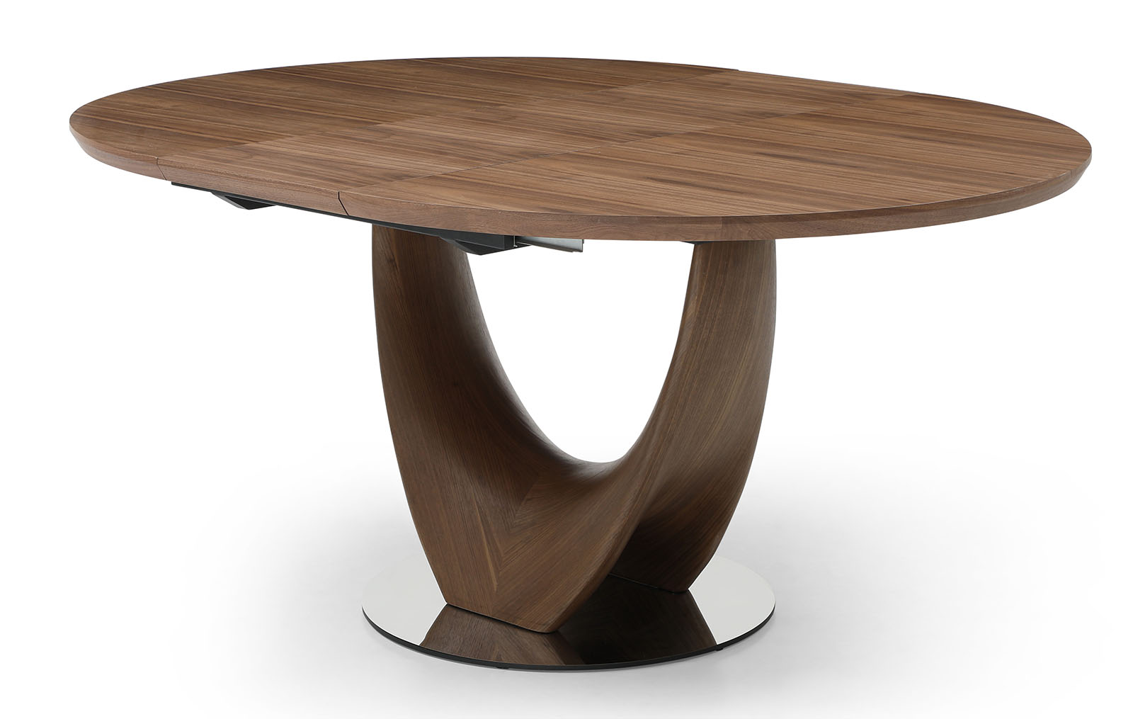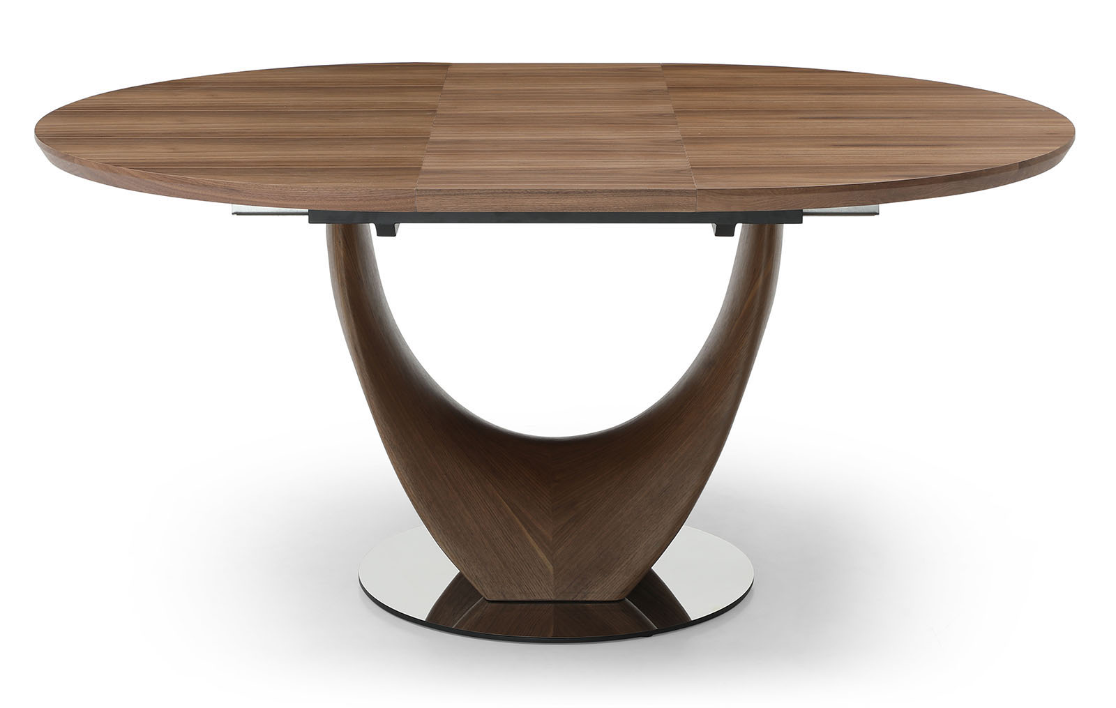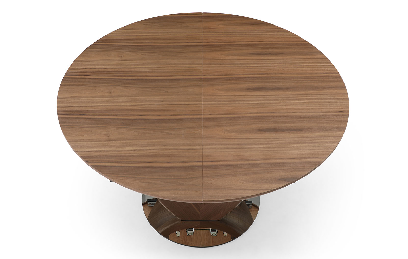 Круглый стол Ramona с оригинальным подстольем легко раскладывается в овальный при необходимости увеличить длину стола.
