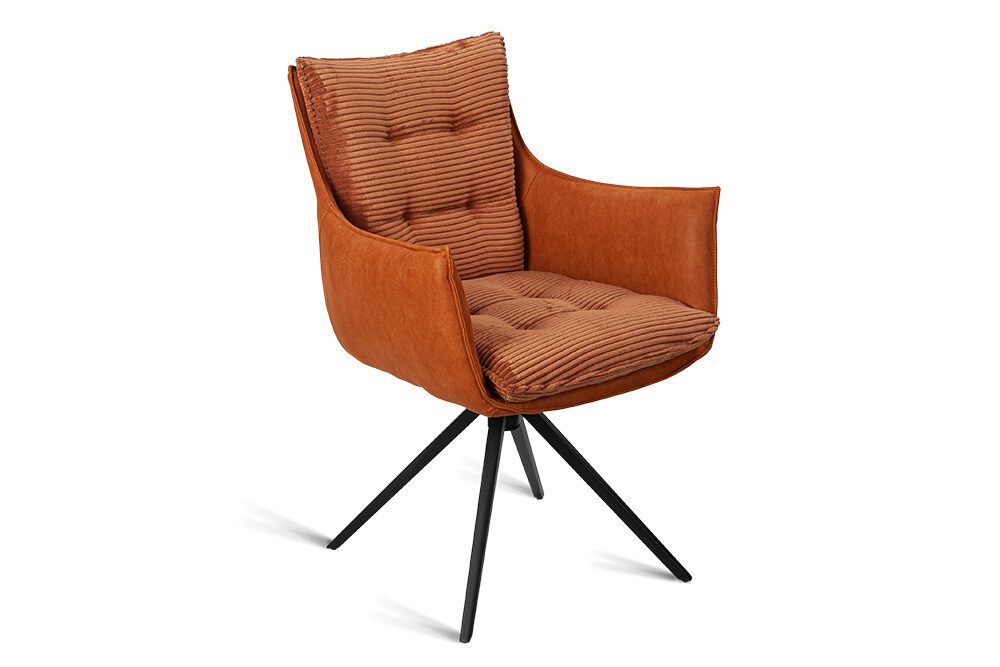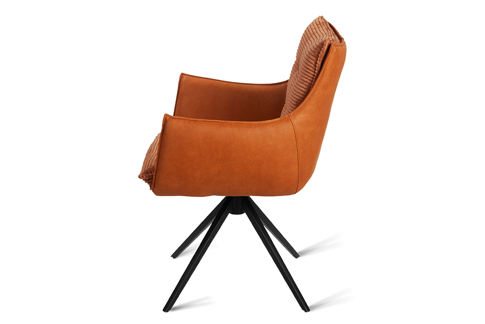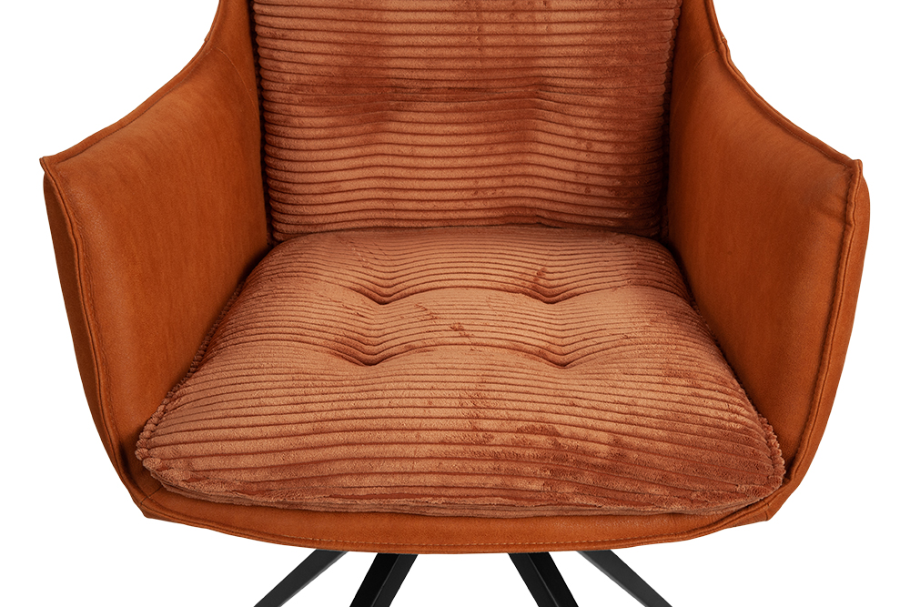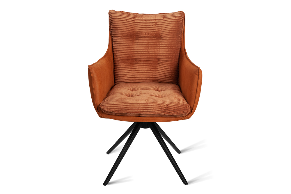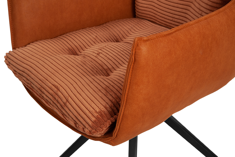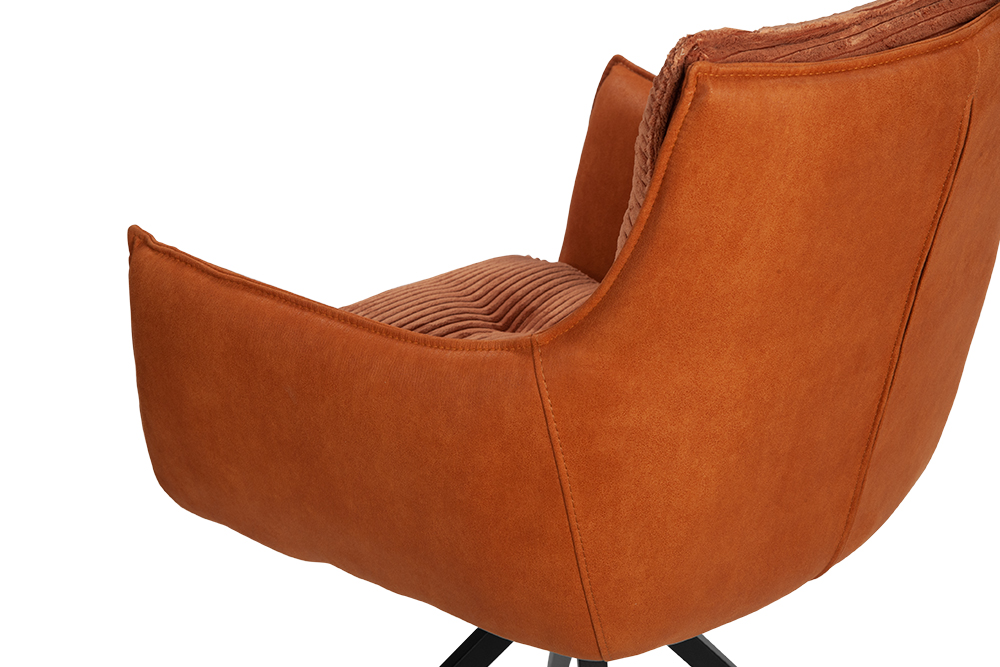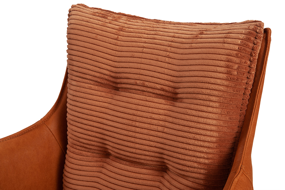 Стул-кресло B960 — это сочетание комфорта и современного стиля. Мягкие подушечки из велюра терракотового цвета с вельветовой фактурой создают приятные тактильные ощущения и привлекают внимание своим выразительным дизайном. Спинка и подлокотники, выполненные из терракотовой экокожи с замшевой текстурой, добавляют изделию утонченности и изысканности.
