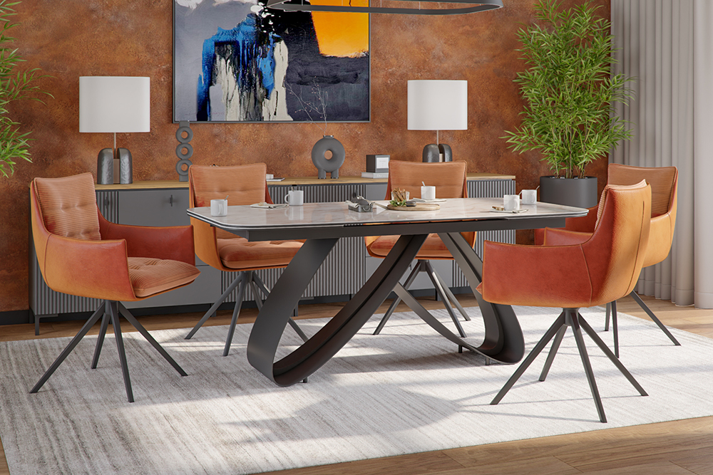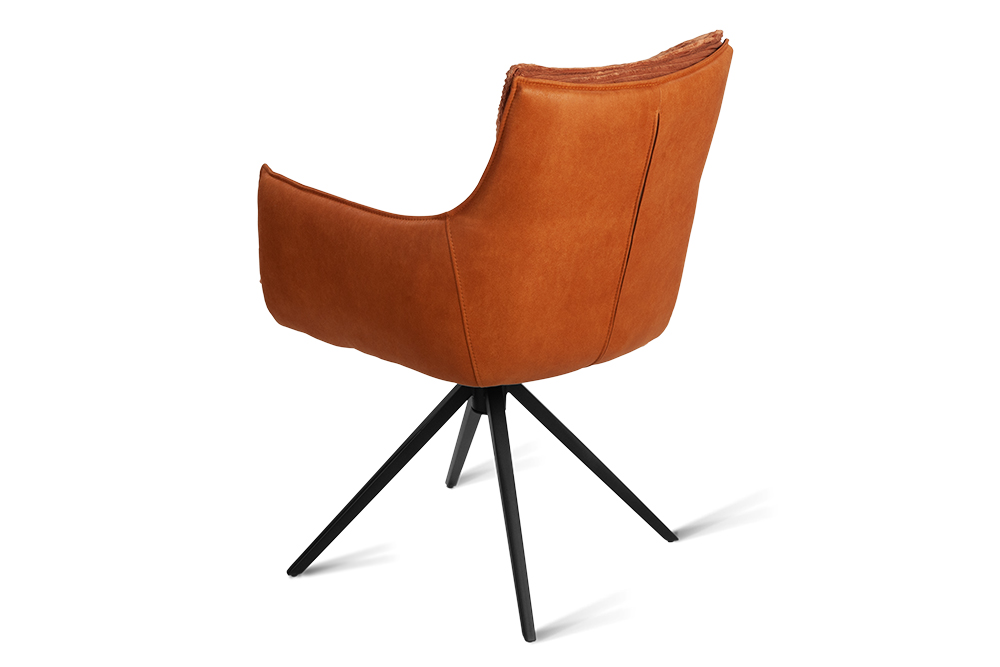 Обтекаемые формы, широкие подлокотники и удобная посадка обеспечивают комфорт даже при длительном использовании, а металлические ножки с лучевидным дизайном в черном цвете придают конструкции легкость и устойчивость. Поворотный-возвратный механизм кресла позволяет плавно вращаться и автоматически возвращает сиденье в исходное положение, добавляя функциональности и поддерживая гармоничный внешний вид интерьера. Идеальный выбор для дома, офиса или ресторана — стильное и практичное решение для вашего пространства!