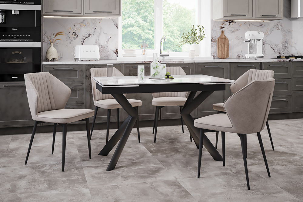 Стул B141 выполнен в сдержанном оттенке «латте». Этот тон выглядит особенно элегантно благодаря нежной фактуре велюра, использованного в обивке. Изогнутая спинка необычной шестигранной формы декорирована аккуратной вертикальной строчкой. Стальные ножки рассчитаны на высокие нагрузки и долгие годы службы. Такой стул с нейтральным оформлением и оригинальной конфигурацией легко сделать частью интерьера с любой концепцией — от лофта до классики.