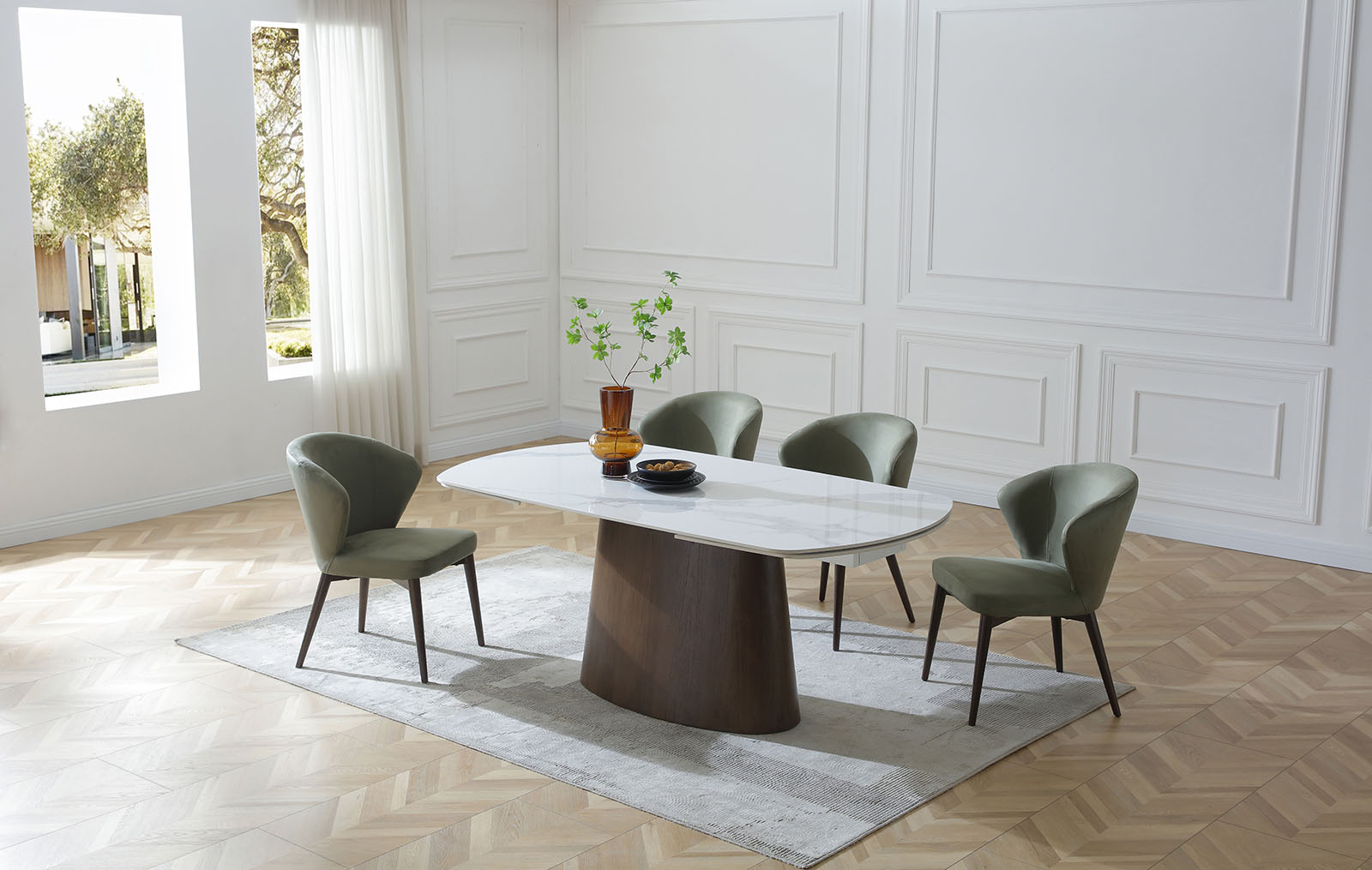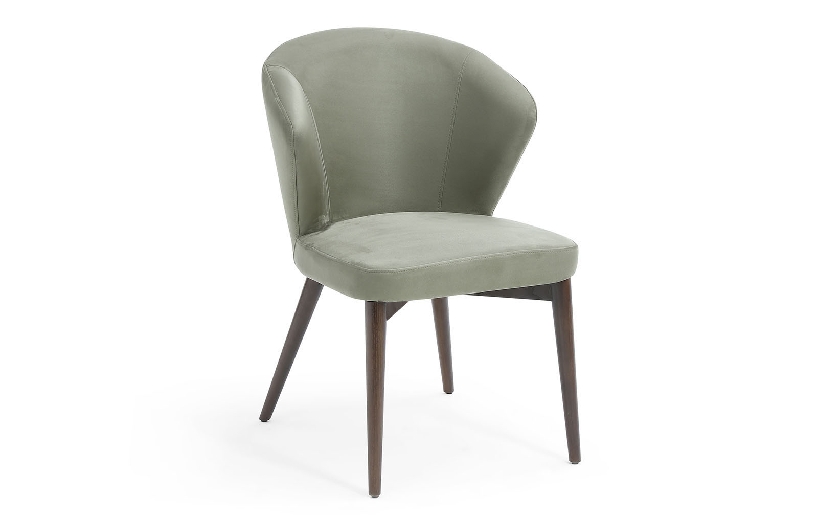 Обеденный стул Benedict имеет обивку из светло-коричневой ткани и ножки из ясеня, тонированные в оттенок ореха. Деревянный каркас сиденья, высокие ножки из дерева придают изделию элегантный вид и отсылают к стилю Mid Century Modern. Лаконичный дизайн стульев позволяют гармонично вписать их в большинство современных интерьеров.