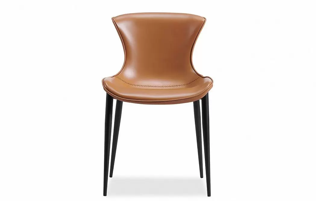 В основе стула – прочная стальная рама. Обивка — из качественной коричневой экокожи.