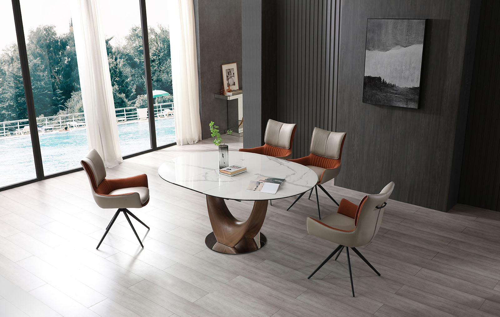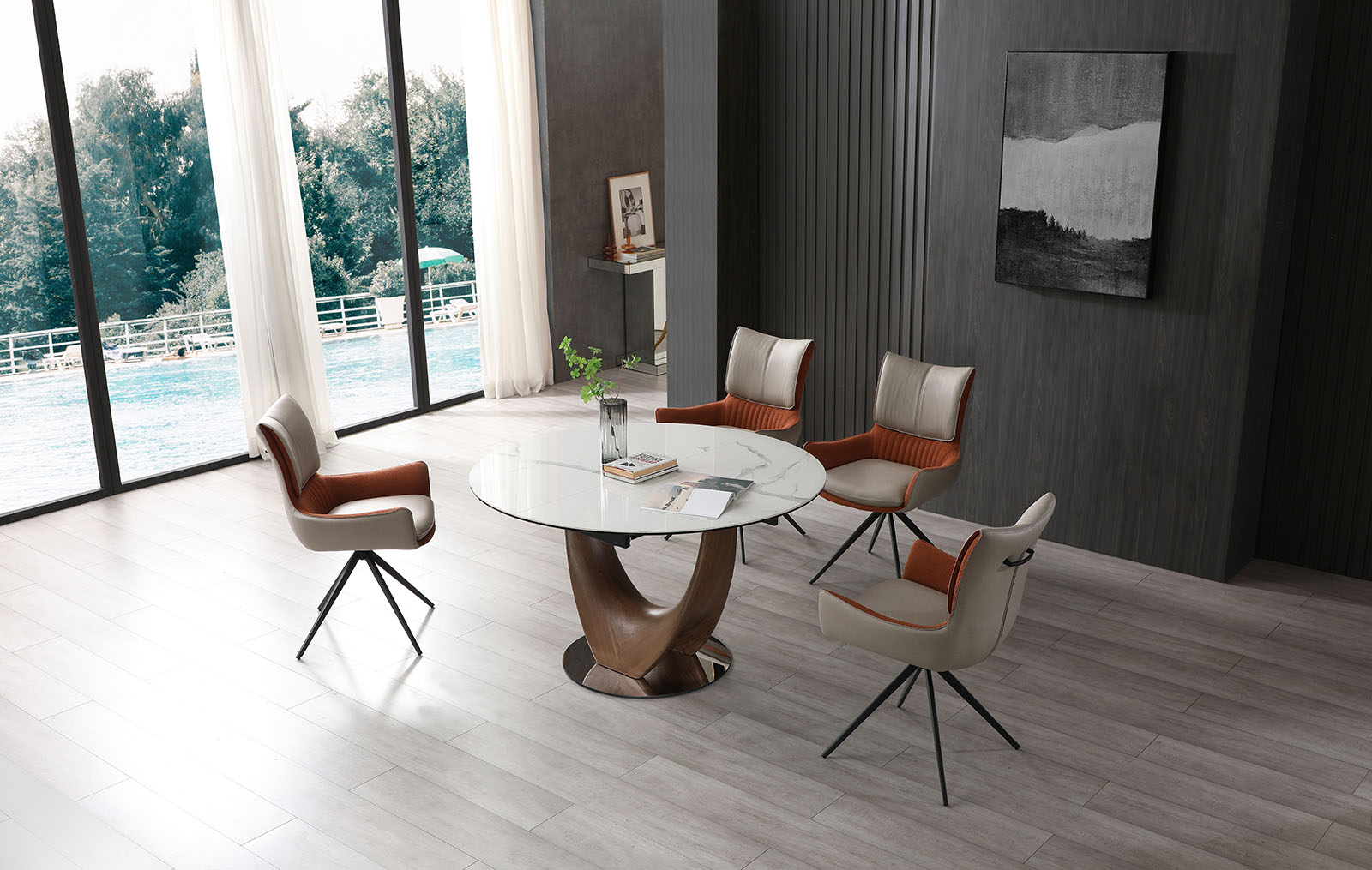Кресло Josh может вращаться на 180° и самостоятельно возвращаться в исходное положение, благодаря поворотно-возвратному механизму. Такой стул удобно использовать и с обеденными, и с письменными столами.