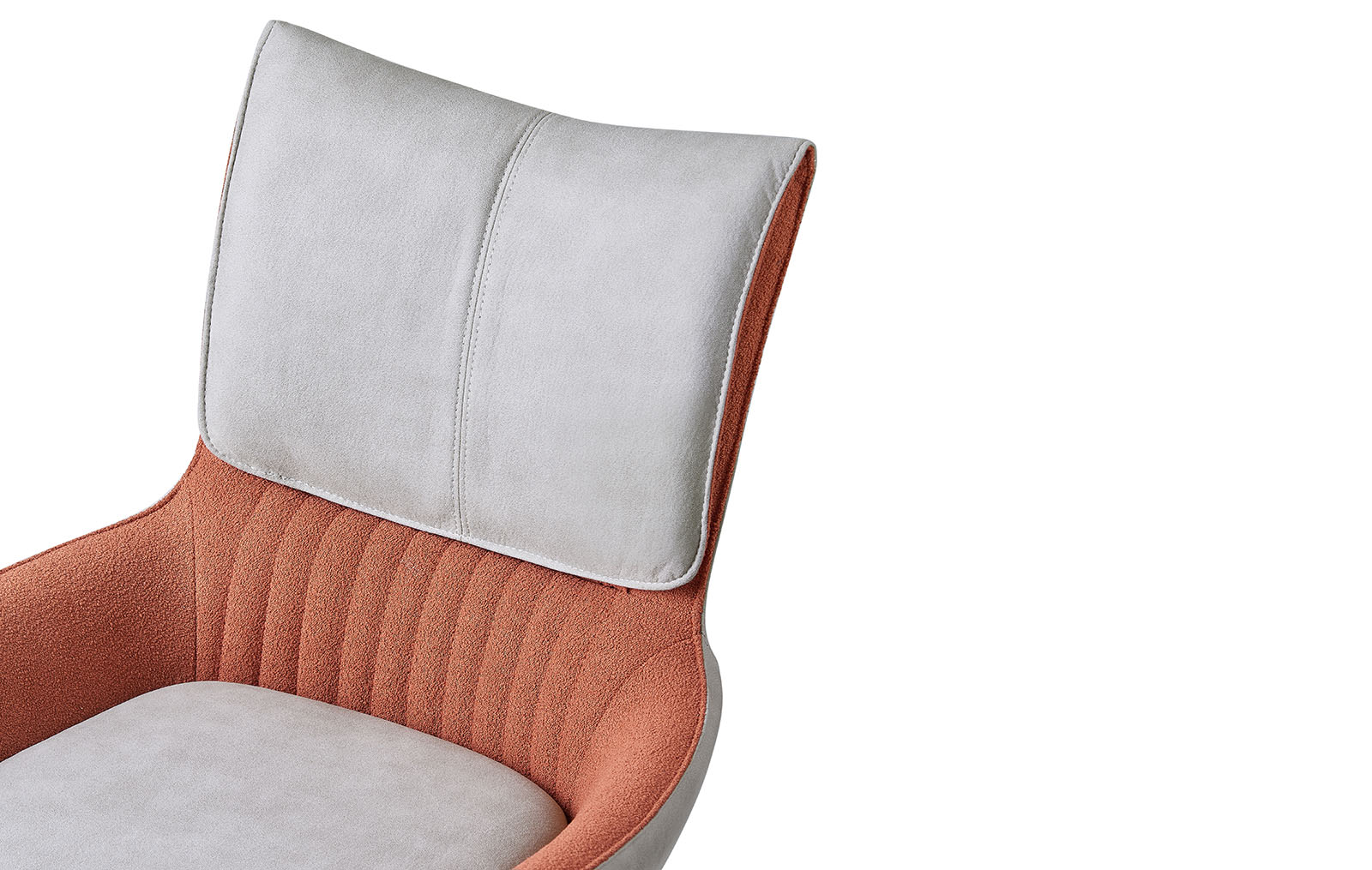 Обивка изготовлена из ткани тедди и экокожи серых оттенков.