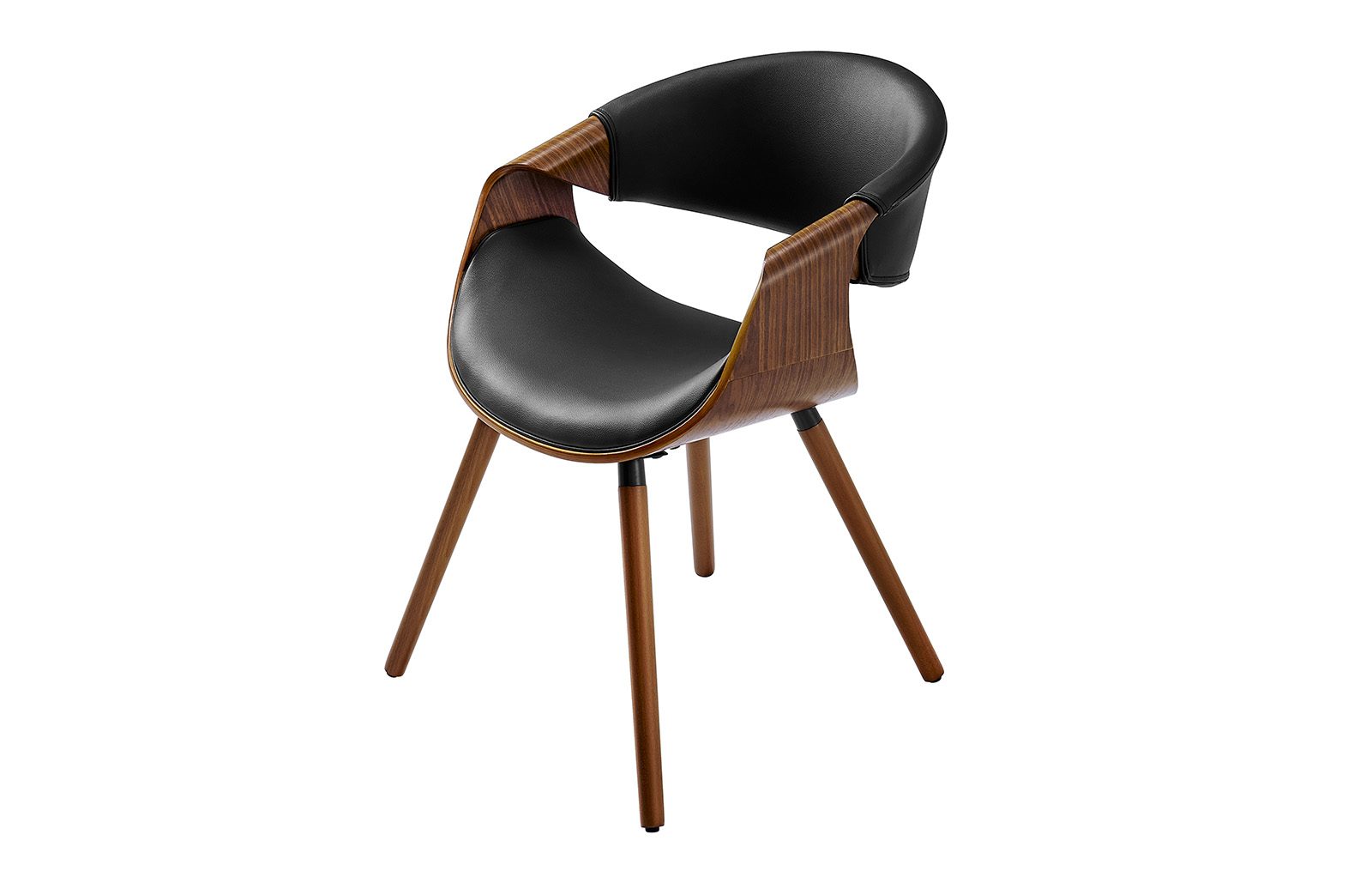Ширина 54.5 см, глубина 56 см, высота 75 см. Высота сидения: 44.5 см Обивка: Экокожа/ Натуральный шпон Ножки: дерево Цвет: черный/орех