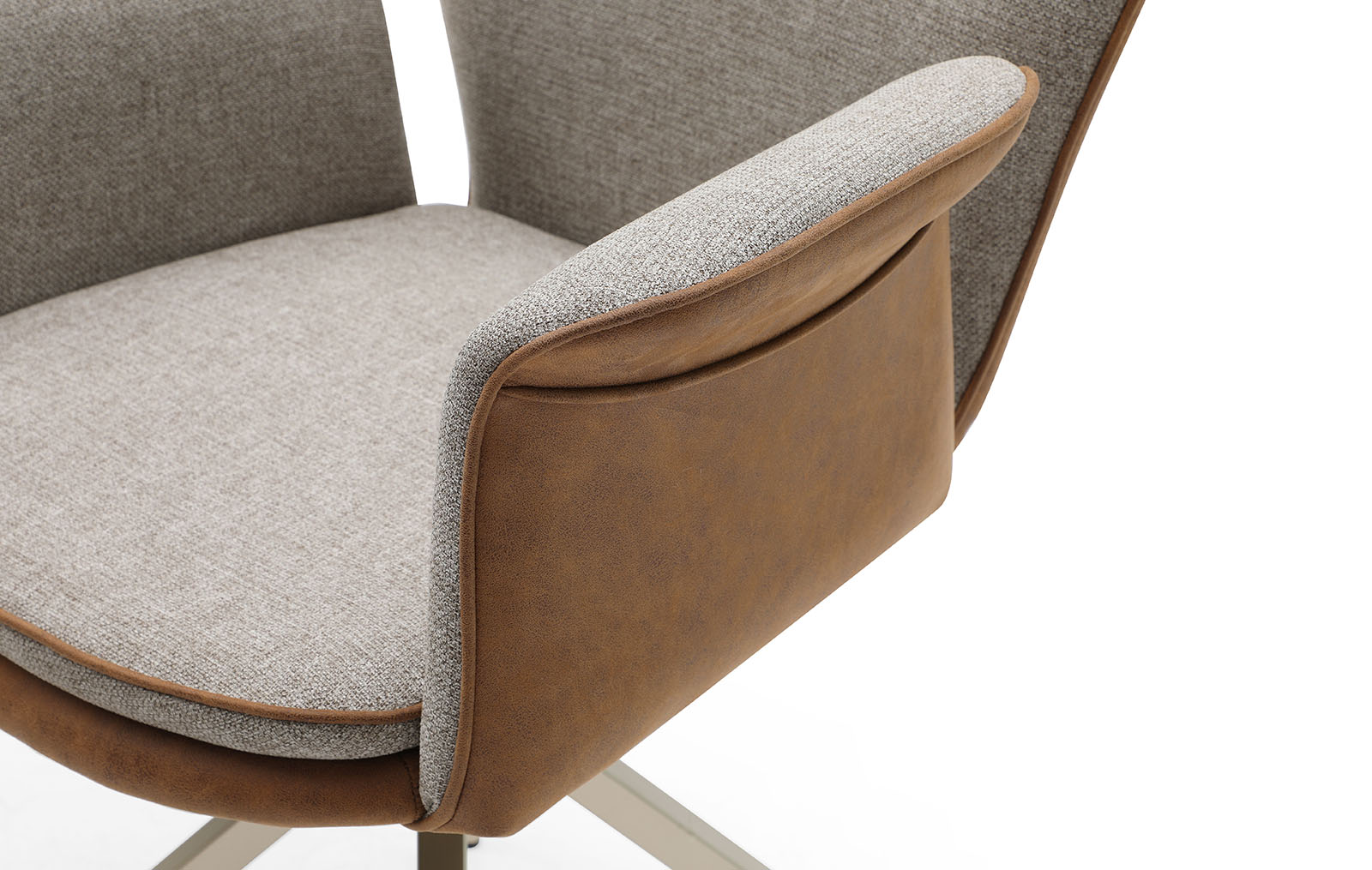 Лицевая сторона стула выполнена из ткани, а задняя – из экокожи карамельного оттенка. Ножки из металла в оттенке шампань, подлокотники обеспечивают удобство и комфорт. Такой стул отлично подходит для столовой, гостиной и кухни. Также его можно поставить в спальне, детской, прихожей, кабинете – в каждой комнате, где он может понадобиться.